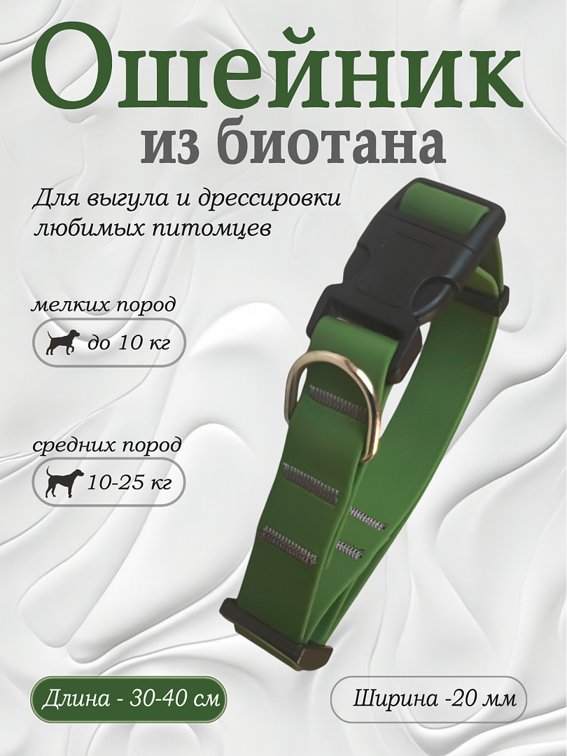 Ошейник из биотана 20 мм оливковый (оптовая цена от 10 шт. -250 р)