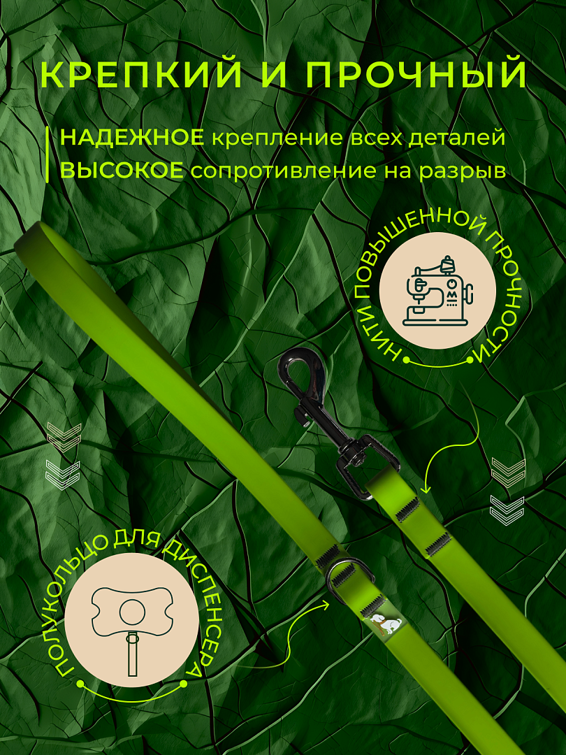 - Выдерживают большие нагрузки благодаря армированному слою внутри. Дополнительную прочность нашим поводкам придают усиленные карабины. При этом наши поводки достаточно легкие и не нагружают лишним весом вашего питомца. Мы понимаем как это важно.