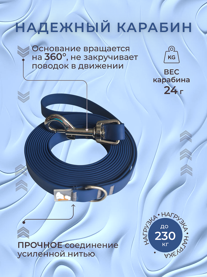 - Выдерживают большие нагрузки благодаря армированному слою внутри. Дополнительную прочность нашим поводкам придают усиленные карабины. При этом наши поводки достаточно легкие и не нагружают лишним весом вашего питомца. Мы понимаем как это важно.