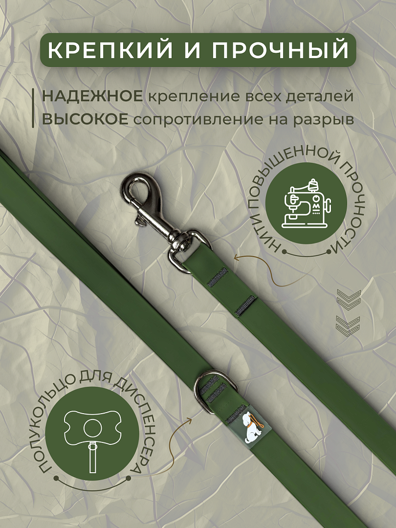- Выдерживают большие нагрузки благодаря армированному слою внутри. Дополнительную прочность нашим поводкам придают усиленные карабины. При этом наши поводки достаточно легкие и не нагружают лишним весом вашего питомца. Мы понимаем как это важно.