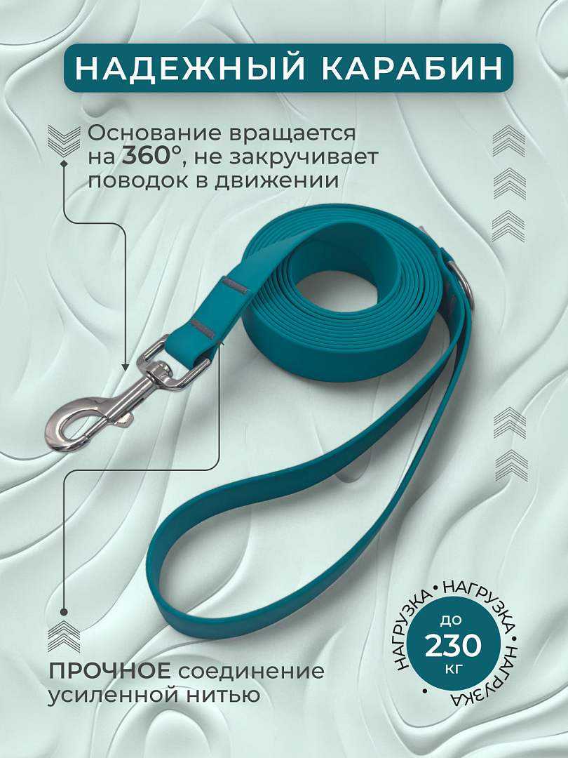 Поводок из биотана 25 мм, (карабин 80х26), бирюзовый