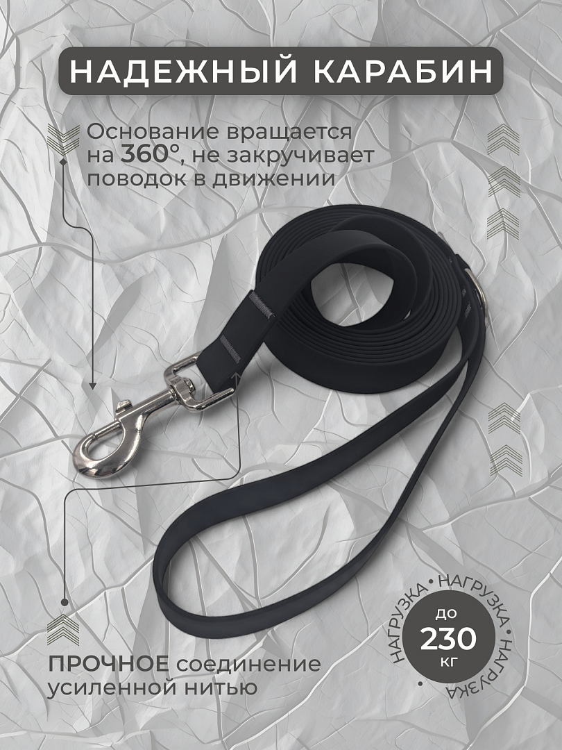 Поводок из биотана 25 мм, (карабин 80х26), черный