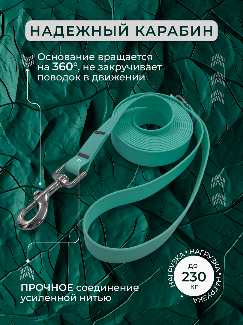 - Выдерживают большие нагрузки благодаря армированному слою внутри. Дополнительную прочность нашим поводкам придают усиленные карабины. При этом наши поводки достаточно легкие и не нагружают лишним весом вашего питомца. Мы понимаем как это важно.
