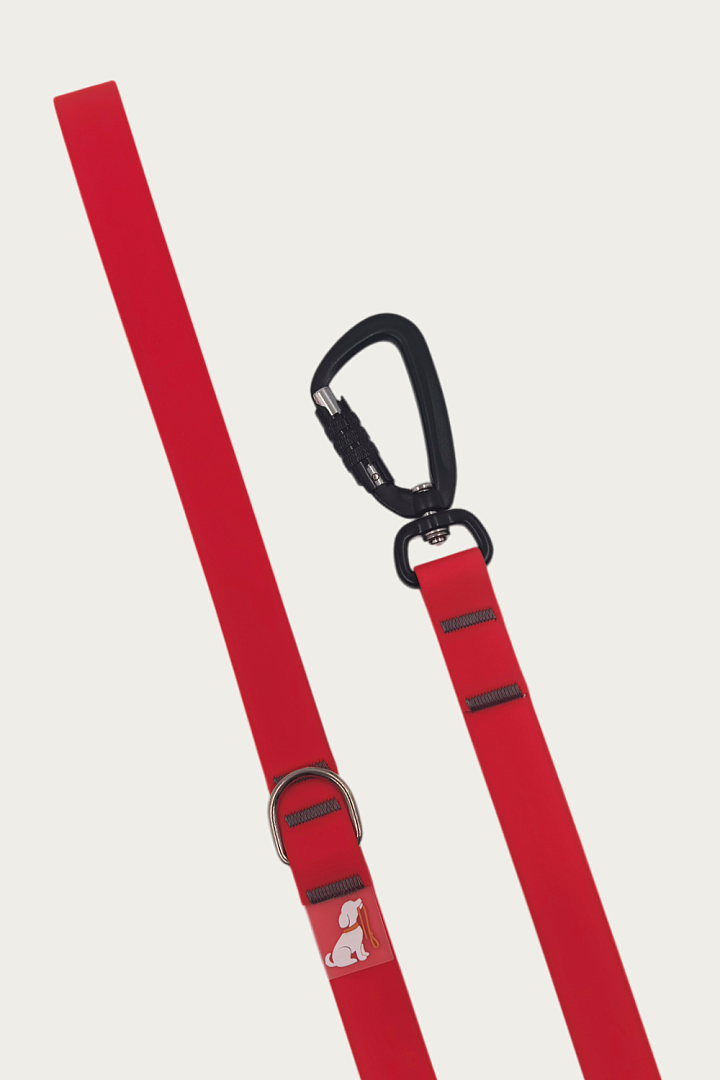 Поводок 20 мм (биотан) алюминиевый карабин, красный