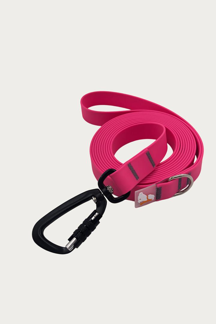 Поводок 20 мм (биотан) алюминиевый карабин, розовый