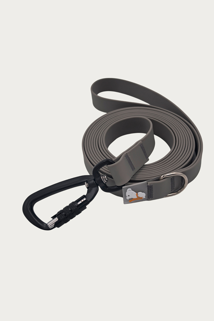 Поводок 20 мм (биотан) алюминиевый карабин, серый