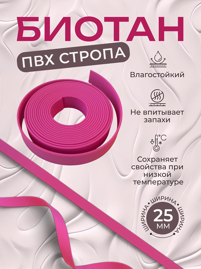 Стропа биотан 25мм розовая (оптовая цена от 50 м -120 р)