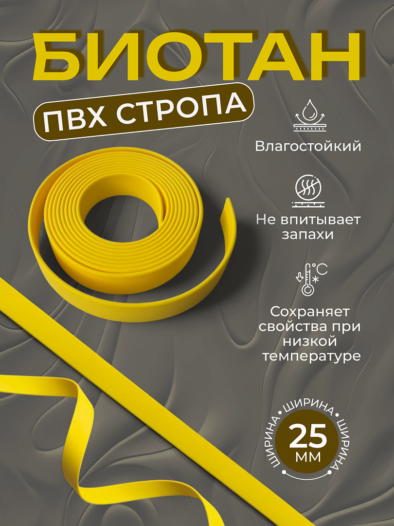 Стропа биотан 25мм желтая (оптовая цена от 50 м -120 р)